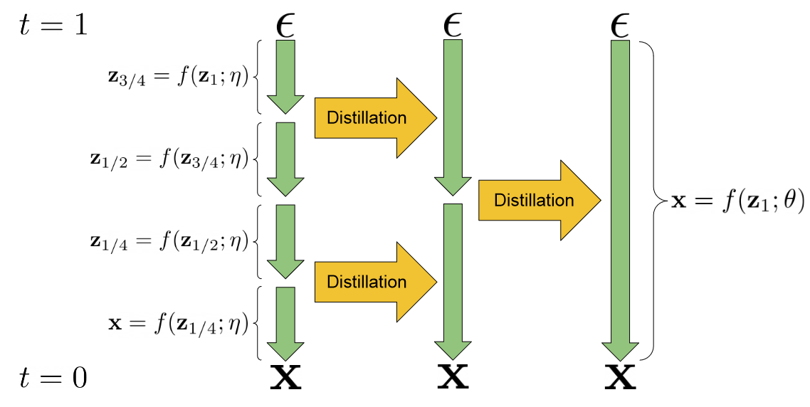 We want to have 1 student step have input \(z_t\) and output \(\tilde{z}_{t''}\) equal to \(z_{t''}\)